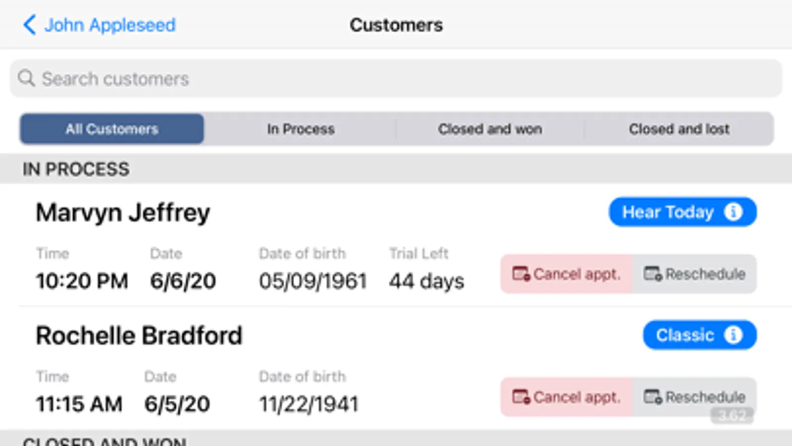 1. Handle appointments, reschedules and no shows