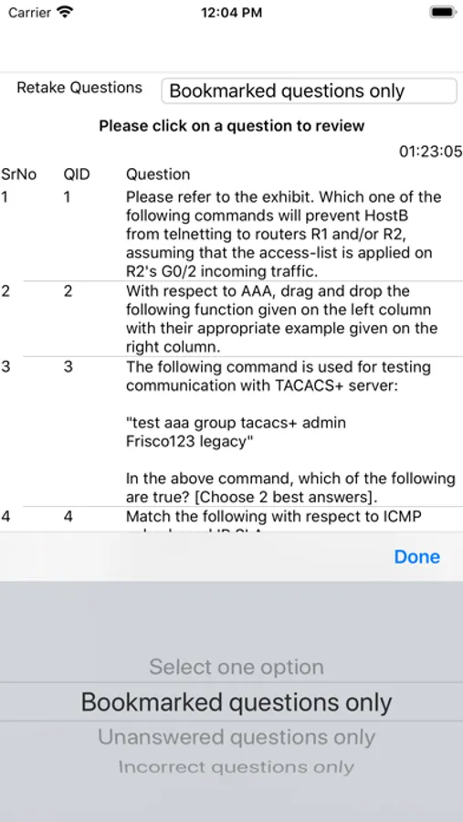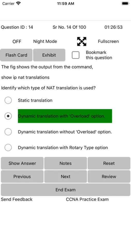 Complete explanation is provided for each question in Learn mode, and actual exam environment is simulated in Exam mode. Options to save the results and reviewing questions are provided.