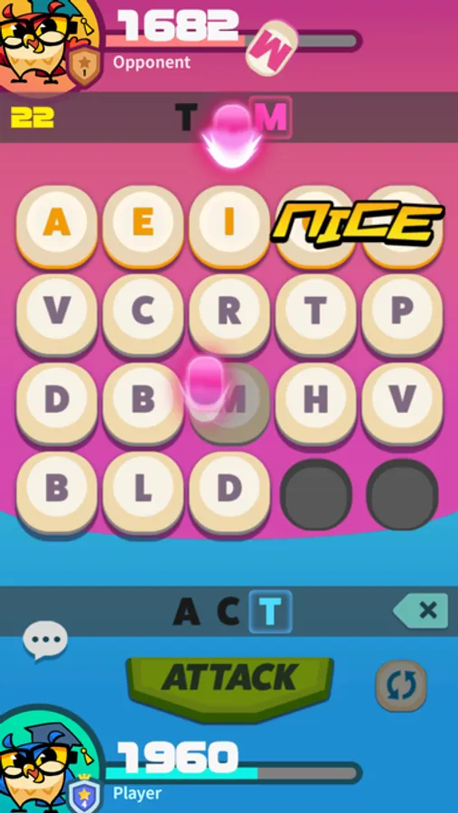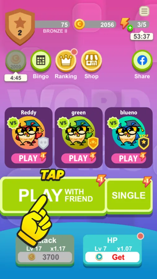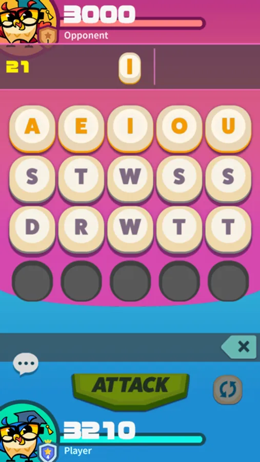 In this game, you can attack opponent by making words! You need to use opponent’s last letter of last word. Try making longer words than your friends to go to higher arena. The longer word you make, the stronger damage you attack! Cute stamp is also available for you to communicate:)
