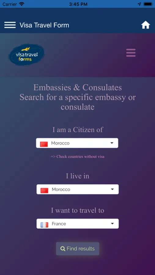 This application also includes the option to find out all the countries you may visit without visa requirements depending on the actual passport and nationality you have.