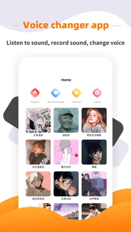 • Recording voice change: In a new way, make your voice interesting, add special effects to the sound, free recording using girls, uncles, funny, thriller all kinds of sound effects play.