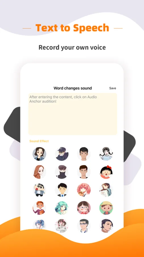 • Text to speech: Professional text to speech one-click synthetic voice change, voice conversion is immediately available, Chinese + dialect + children's voice at will switch, a variety of pronunciation people choose.