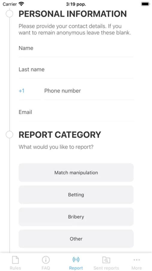 Our reporting app helps people raise concerns about unethical, unsafe, or unlawful practices across sports organisation globally.