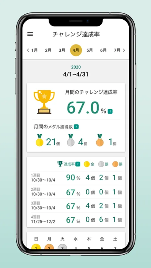 日替わりで生活状況に応じた3つのチャレンジ(健康行動)をご提案します。達成できましたら、アプリに記録してください。