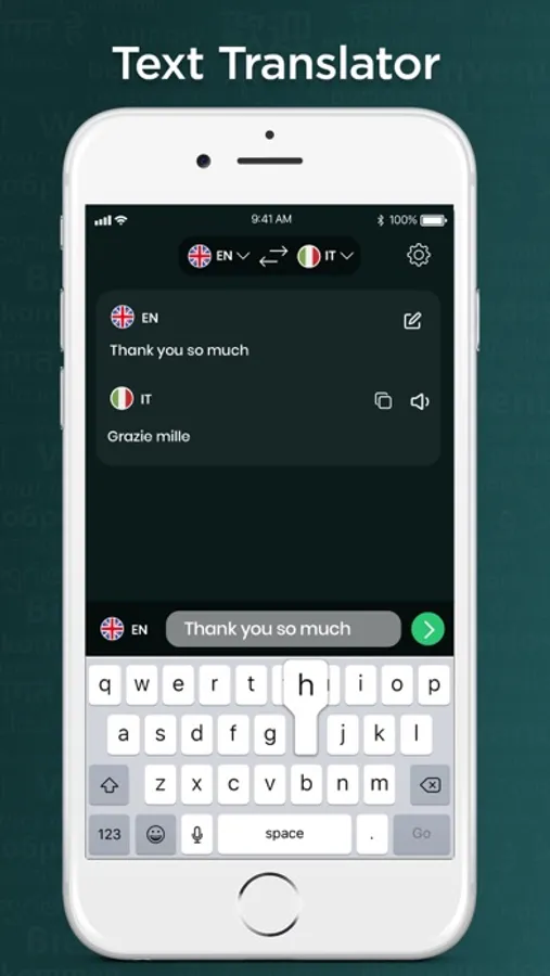 Text and translate easily to any language you select.