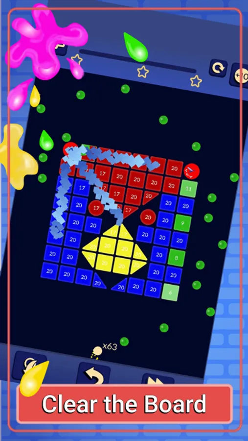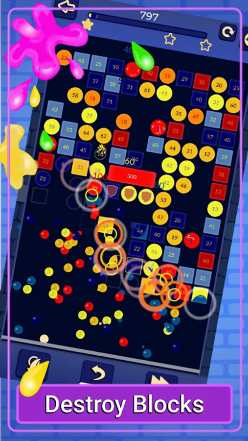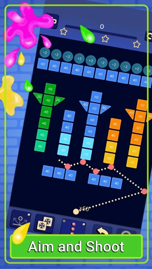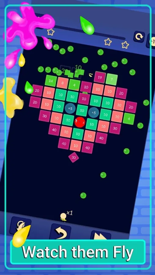 Easy to play! A swipe of finger is all you need. Just launch the drops to break the bricks.
