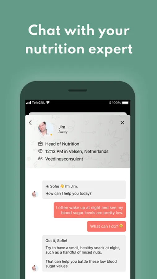 - Chat with our nutrition experts in the app for answers to all your questions