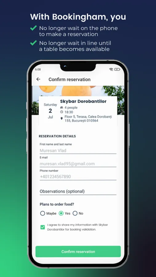 We also make sure that you won’t forget about your plans. Bookingham sends you a reminder letting you know that you have a reservation soon.
