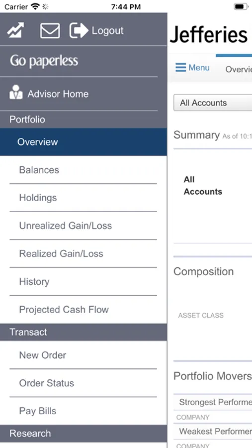 Jefferies Wealth Management mobile application allows you to manage your financial profile in an efficient and user-friendly enviroment for both tablet and phone. Through the Jefferies Wealth Management mobile aplication you have fully featured access to account information, such as balances, holdings, and activity. The app will enable access to your NetXInvestor account with Jefferies Wealth Management and provides all the features of your desktop version. Anytime anywhere.