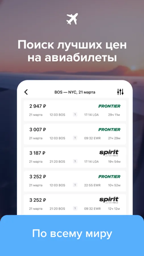 Megabonus Travel is a handy app that will help you quickly and easily find and book flights anywhere in the world.