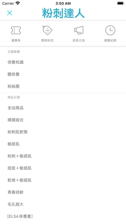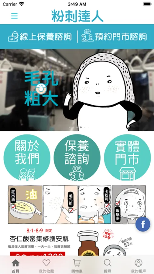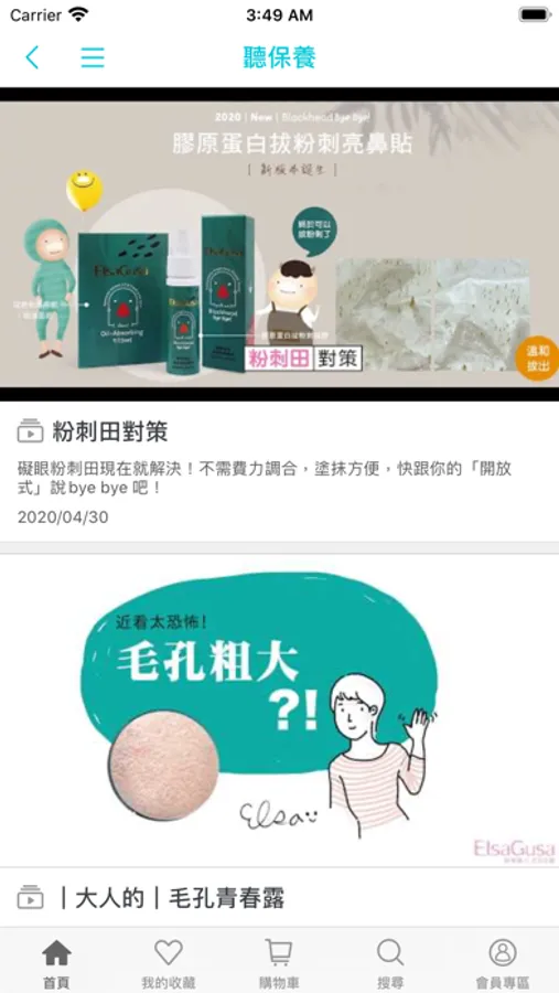 透過『粉刺達人 艾莎古薩』APP可了解正確保養知識,觀賞保養影片及進行線上諮詢,並提供線上保養品購物。