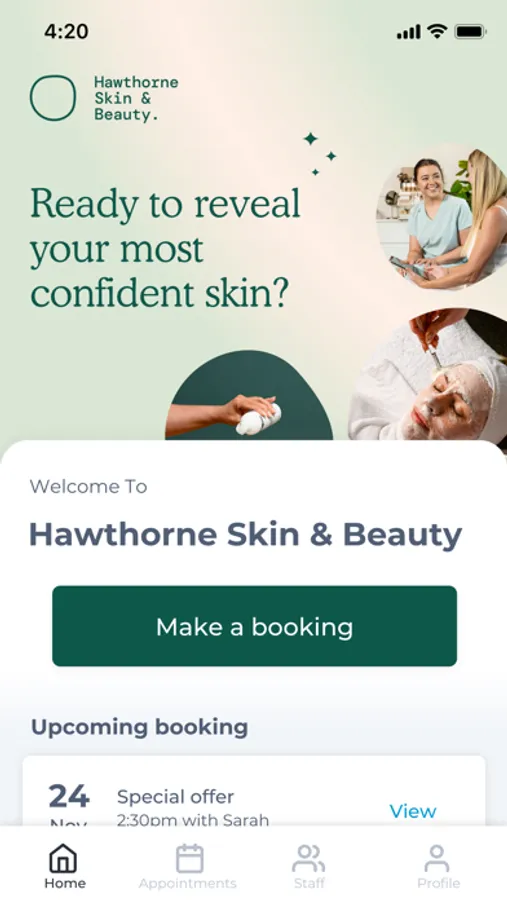 The Hawthorne Skin & Beauty app makes booking your appointments and managing your loyalty points even easier. You're just a few taps away from feeling good and looking great!