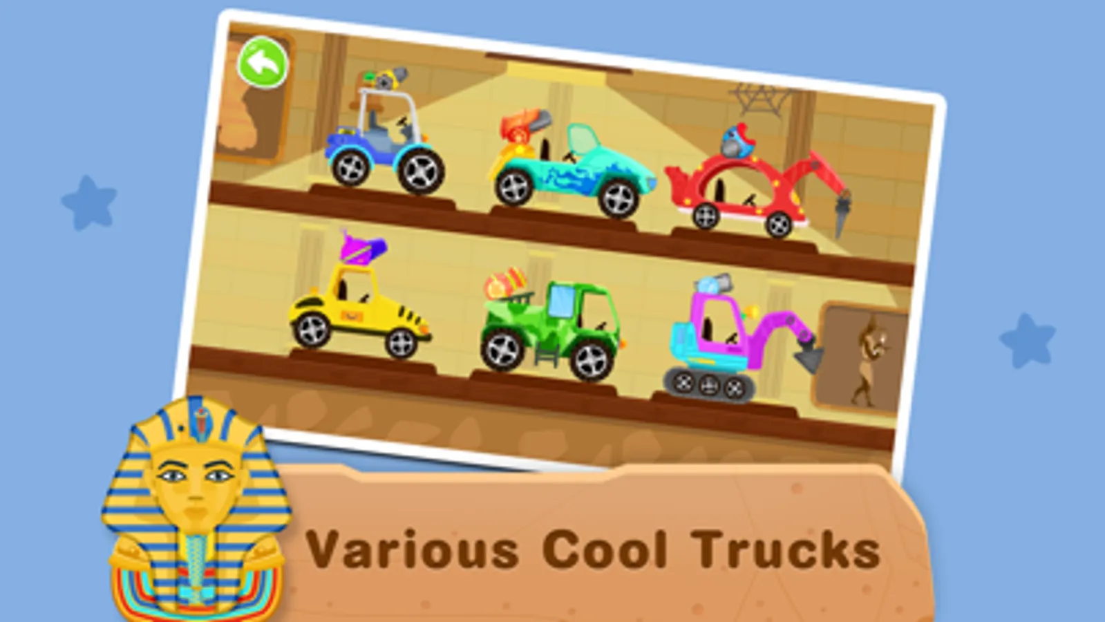 Drive dinosaur digger trucks to explore mysterious ancient Egypt! Experience surprises and challenges in the adventure and discover great treasures!