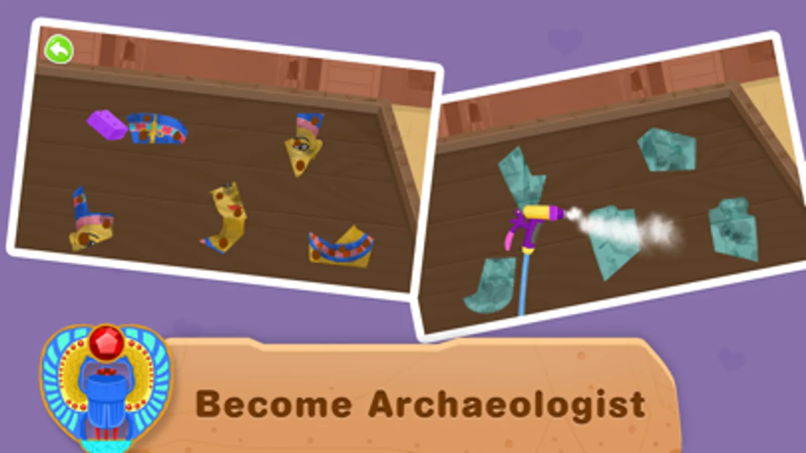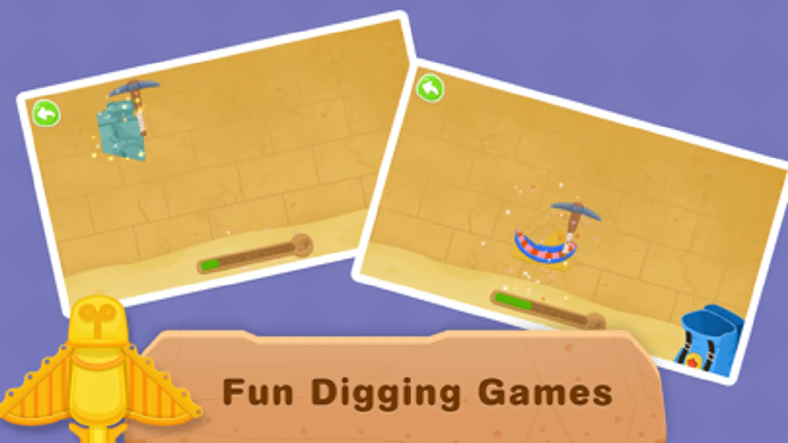 Ancient Egypt, a world-famous civilization, created lots of precious cultural treasures! Little dinosaurs must go through a stunning car-driving journey in the desert to finally reach the hidden places of the treasures! Dig like a real archaeologist and find all pieces of the treasures! Clean and reconstruct them using archaeologist tool! You will learn all cultural background and legends of those treasure in this game!
