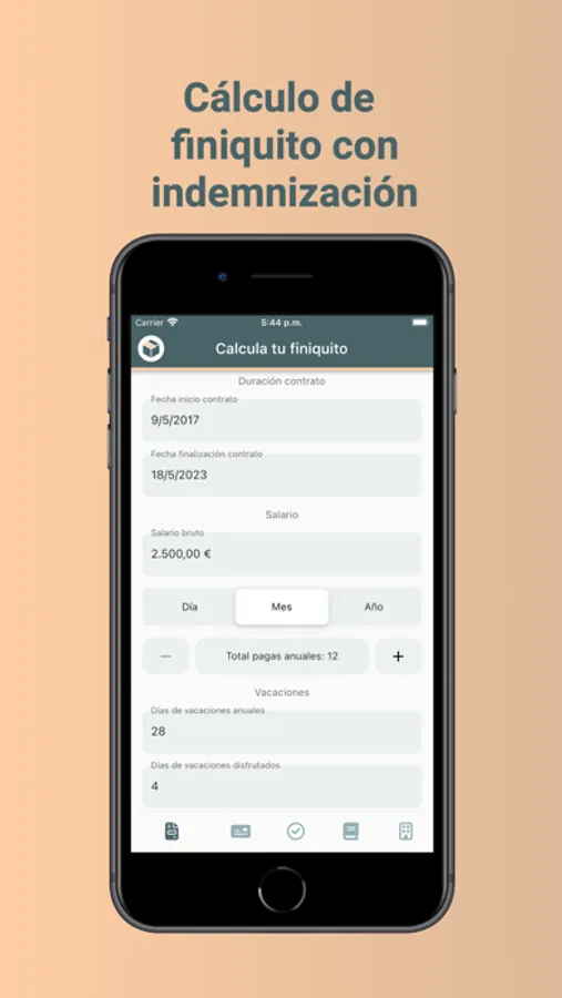 Con Appsesoria, calcular tu liquidación es más rápido que sacarle punta a un lápiz. Ingresa las fechas de inicio y fin de contrato, el salario (diario, mensual o anual), las pagas extras y los días de vacaciones. ¡Incluso se encarga de calcularlo correctamente si son días laborales o naturales! Si no recibiste preaviso, ¡más dinero para ti! Además, descubre las indemnizaciones correspondientes a diferentes circunstancias de despido. Y una vez que hayas finalizado, podrás generar un archivo PDF con toda la información detallada para guardarla o compartirla según tus necesidades.