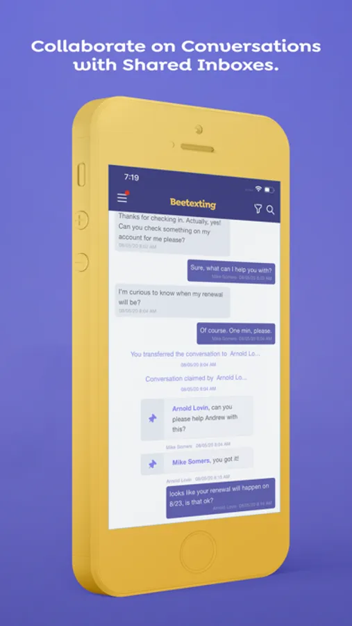 Beetexting is a business text messaging app that sales and service teams use to build deeper stronger relationships with their customers and clients. Team's love it because it's more than just text message marketing software for mass texting; it's an entire texting platform or SMS/MMS CRM for teams to have conversational discussions with each other and their customers thru text message. Your team can access the services from their desktop computer or on-the-go with this app.