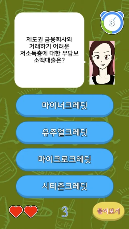 당신은 취준생이 되어 친구가 내는 시사상식퀴즈 문제를 풀어나갑니다.