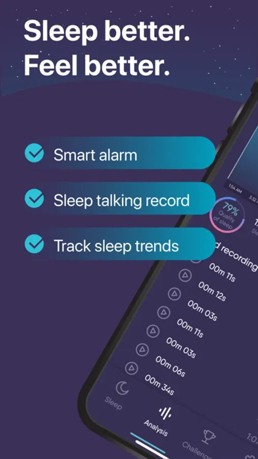 Record important audio events such as snoring, sleep apnea and sleep talking. Explore trends about your sleep and compare your sleep quality with ten Apple Health metrics that affect sleep.