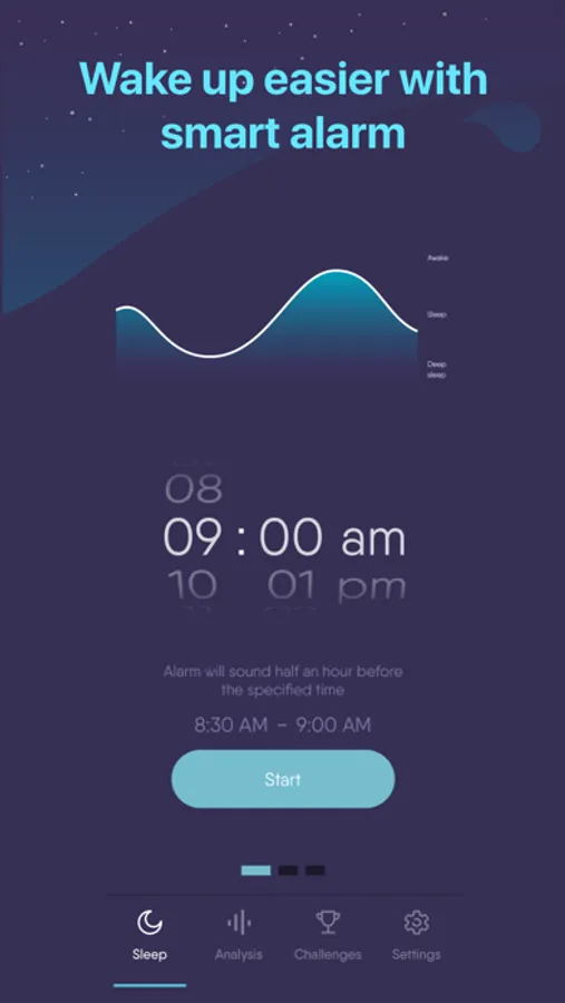 Use Sleep Helper as a smart alarm clock to wake up at the lightest possible sleep stage and start your day refreshed and relaxed.
