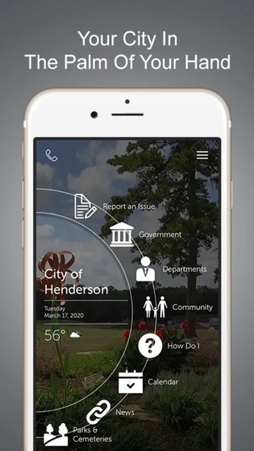 With features like Government, Departments, Community, How do I, Culture & Entertainment, Parks & Cemeteries, News, Events, and Report an Issue you'll find it easier than ever to stay connected with the City of Henderson, TX with just a few taps on your mobile device.