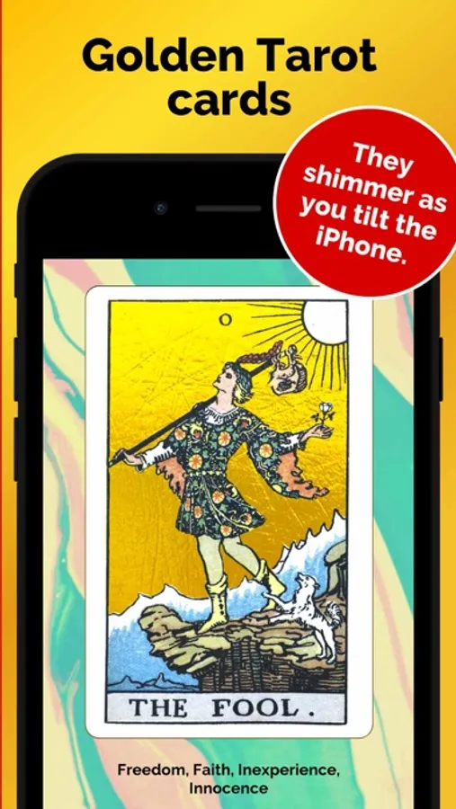 The card deck is a carefully refurbished version of the classic Rider Waite Coleman deck but with a beautiful shimmering gold finish, so realistic that it reflects the environment as you move and tilt your phone. You have to see it in action for yourself!