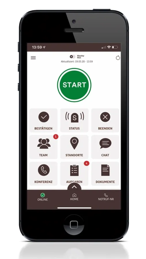 MaydayMax, der digitale Krisenmanager, unterstützt Organisationen in schwierigen Situationen und Krisen durch ein automatisiertes und professionelles Alarm-Handling. Alarmieren, informieren und mobilisieren Sie Personengruppen durch individuelle und gezielte Informationen auf beliebigen Kommunikationskanälen wie SMS, E-Mail, Push, Voice-Sprachanrufen, Online-Chat, Telefonkonferenz, Stabschef aufbieten, Website-Überblendung und SocialMedia-Mitteilungen.