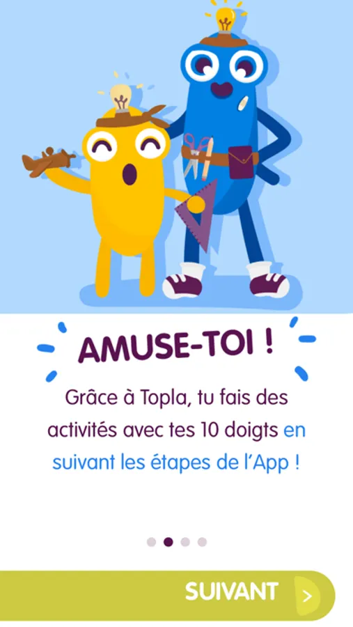 Topla permet à vos enfants d'apprendre et d'explorer le monde à leur manière : en créant de leurs propres mains et en s'amusant ! Et si la meilleure façon d'apprendre était par le jeu ? Apprendre sans s'en rendre compte, apprendre en faisant des activités créatives, apprendre avec Topla !