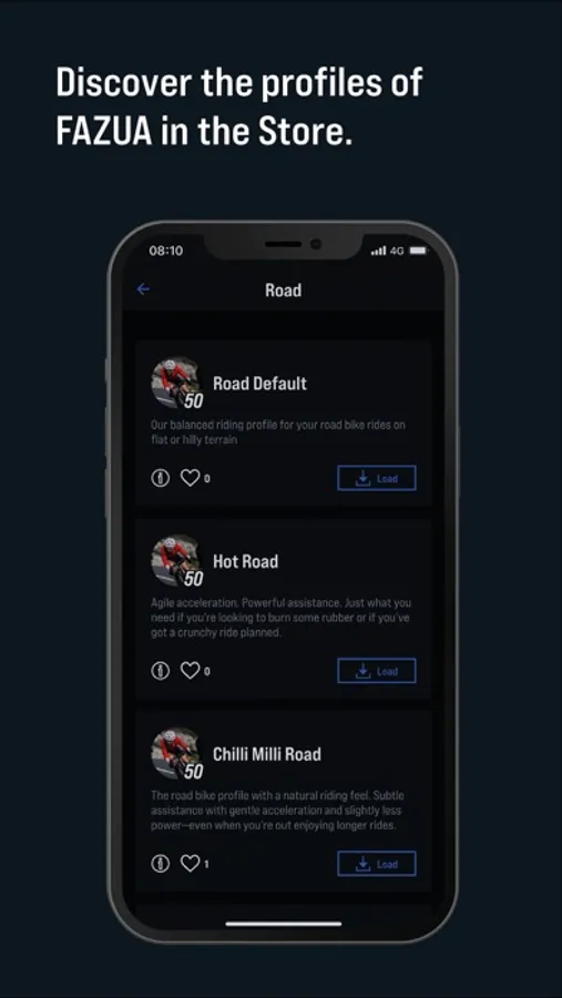 - Access a selection of profiles developed by FAZUA for various riding experiences and usage scenarios.