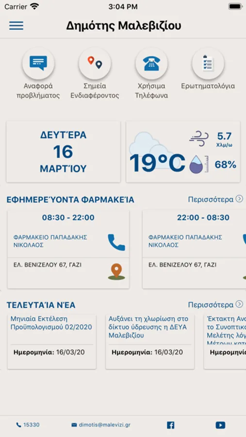 9. Άμεση Επικοινωνία με τον Δήμο μέσω τηλεφώνου, email
