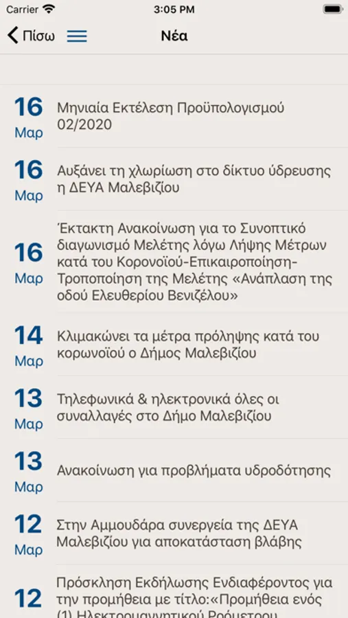 Τέλος, η εφαρμογή δίνει τη δυνατότητα ενημέρωσης των δημοτών με χρήση της υπηρεσίας Push Notifications