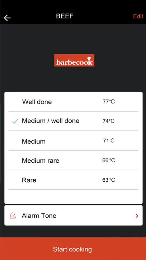 Now barbecuing becomes even easier with the Barbecook Digital Thermo App. You no longer need to wait next to your barbecue until your meat is perfectly cooked. Use the Barbecook Digital thermometer, connect with the App and let him do the work. You can set your desired temperature or select one of the pre-installed temperatures or cooking times. The App informs you when your dish is ready. Meanwhile you sit back and relax! You can also save and share all preparations with the Barbecook Digital Thermo App.
