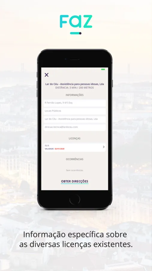 Desmaterializando o processo, Faz permite ao fiscal executar todas as suas funções a partir do Smartphone ou Tablet acedendo em tempo real à base de dados dos locais licenciados e por licenciar. Permite consultar a validade da licença e até criar uma nova ocorrência para um espaço não licenciado.