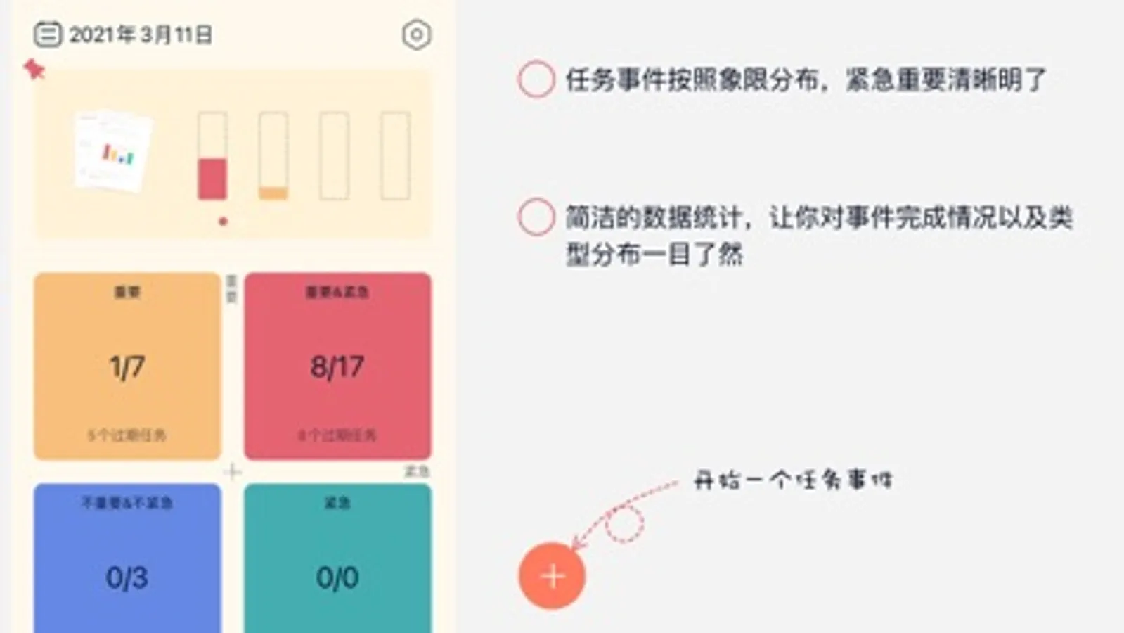SET,通过四象限分类,帮你把任务合理的划分为紧急&重要、重要不紧急、紧急不重要、不紧急也不重要这几种类型,加上支持iOS14+的清新简洁的桌面小组件(Widget),让你的精力和时间能够投入到更有价值和紧迫的任务中。