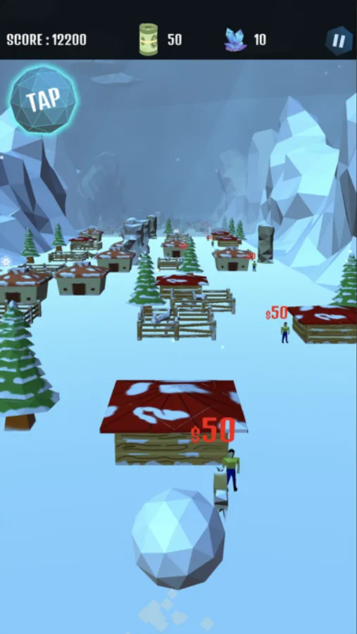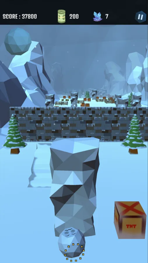 The Monster King is getting older and he is confused about choosing the next king after him. He decides to keep a contest between his sons. The Monster King promises that the new king of Monsters will be the one who collects the most bounty by smashing the targets, and now you have to collect the bounty by smashing the things which come your way. Test your reflexes as you roll down in the snow. Avoid being destroyed by rocks, bombs, houses and walls along sheer cliffs in the SNOW WORLD. Tap, Press and Tilt to avoid obstacles, collect bounty by destroying the target objects.The player will also collect crystals which it could use to revive and buy power ups, unlock new characters, and see how much bounty you can collect!