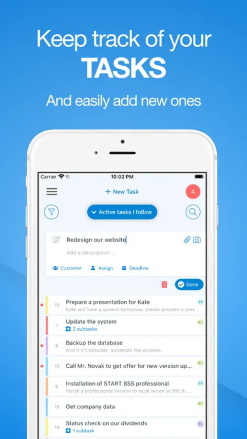 Thanks to this mobile application, you will always have an overview of what and when needs to be done and see the state of things. Simply enter a new task or comment on an existing one. View a customer detail or inventory items. Your customers can easily report their problems to you, see who is working on the issue, and watch the current state.