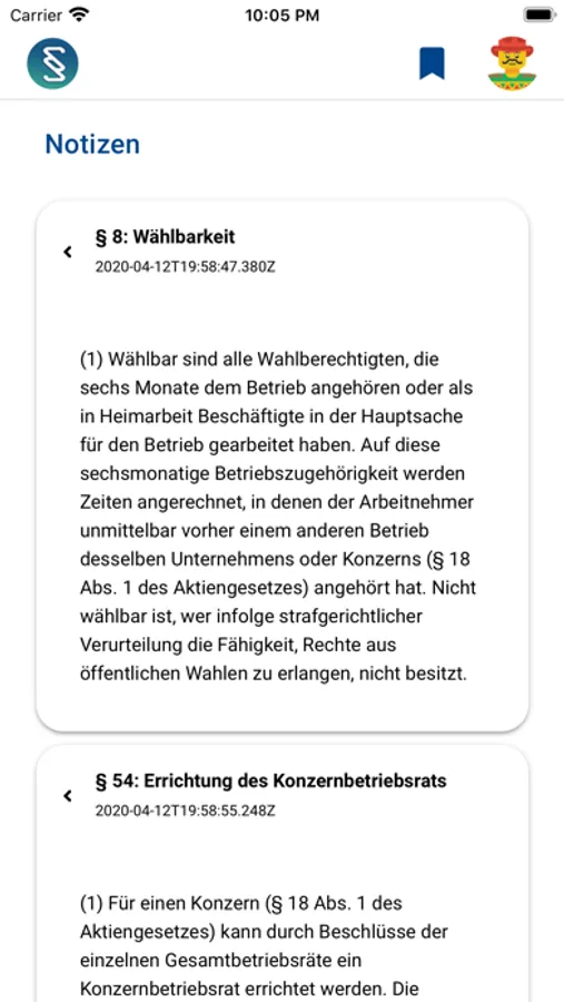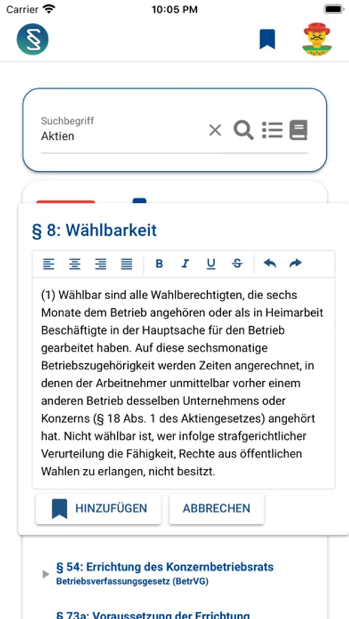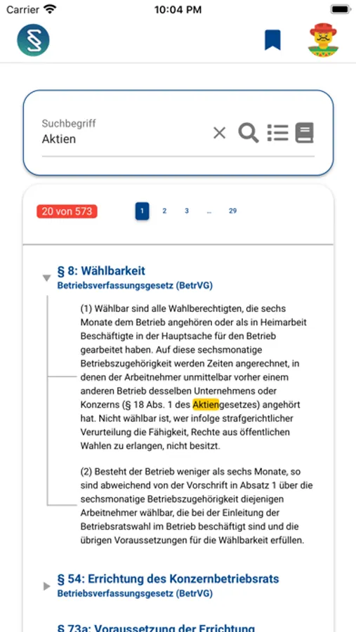 - Verbesserte Darstellung von Gesetzestexten.