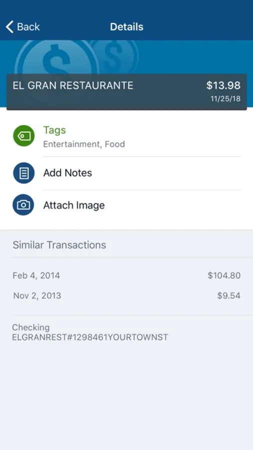 - Keep your transactions organized by allowing you to add tags, notes and photos of receipts and checks.
