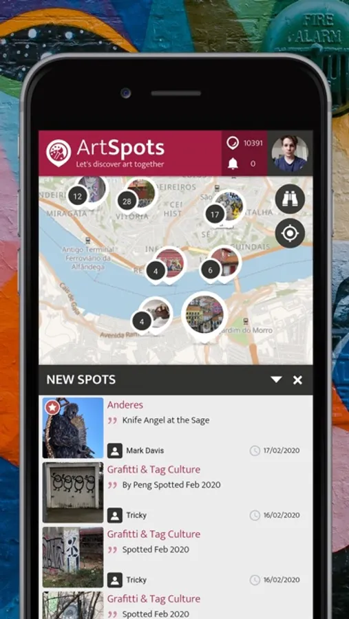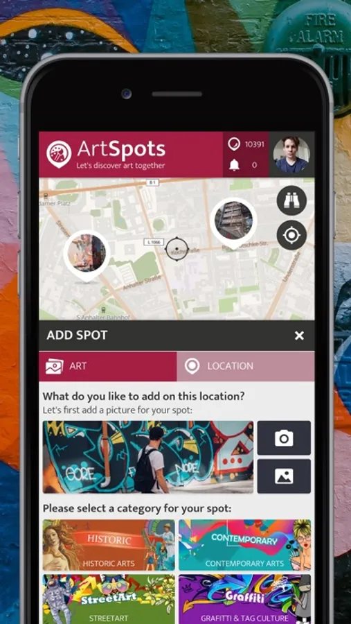 This is art! With the ArtSpots app, you can share your art discoveries and own artworks with a community full of art lovers - and put it on the map. We all experience art daily, from Street Art to visits in museums and galleries. By sharing these moments with others in the ArtSpots app, you help people in your city to explore local creativity or revisit art exhibitions, street art places and graffiti hotspots. The app offers a wide range of art forms, from historic arts to contemporary art, from photography art to architecture, and much more. You can also add places where art happens on the map as permanent art locations, from museums, live music stages or public art spaces to your contemporary art studio.
