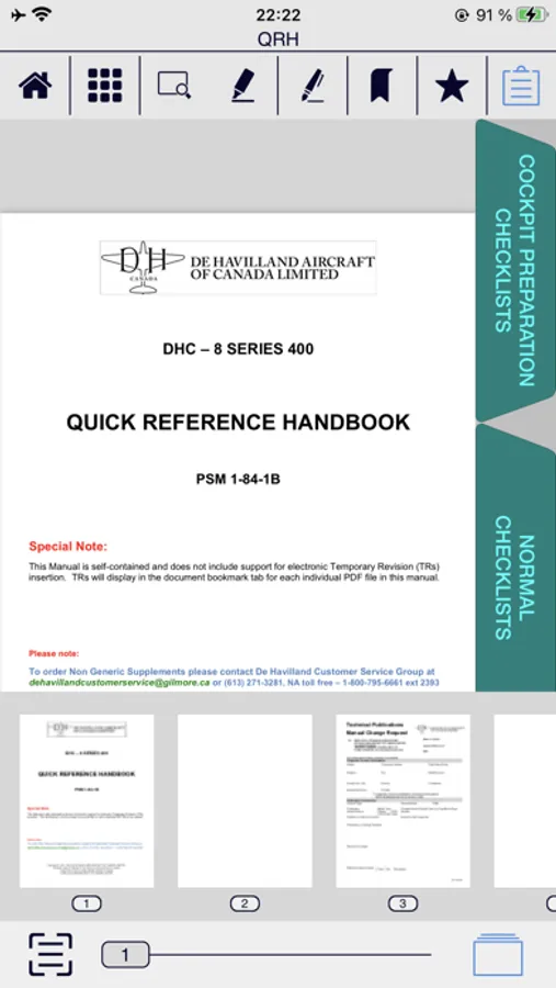 No more manually inserting revisions or Temporary Revisions (TRs) into De Havilland’s flight manuals. These are automatically inserted into the correct sections and distributed across every iPad® in the operator’s fleet by Airbus Technical Publications. Valuable time is saved and pilots are always ready to fly in accordance with the latest regulatory requirements.