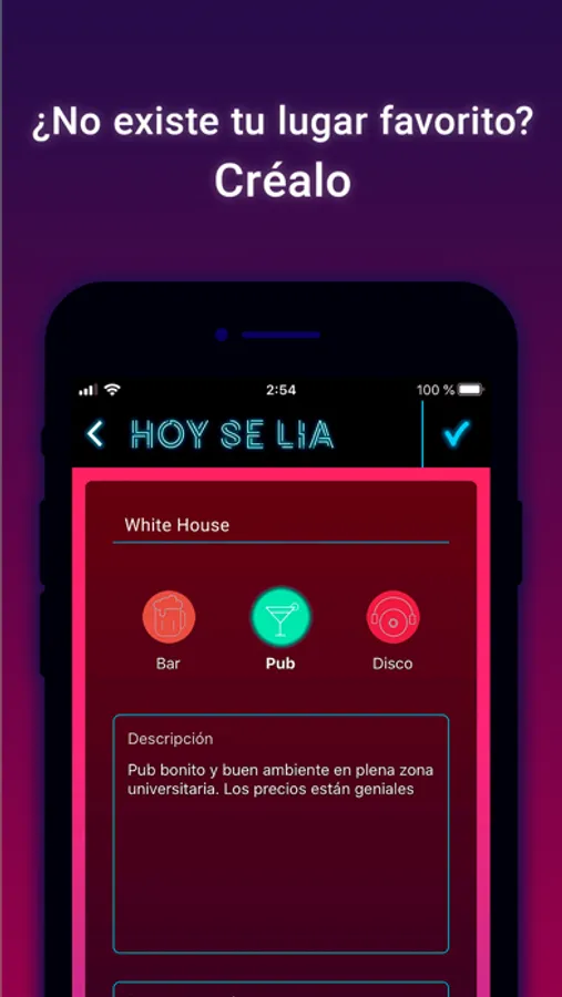 - Crear un nuevo bar, pub o discoteca, que hasta ahora solo tú conoces