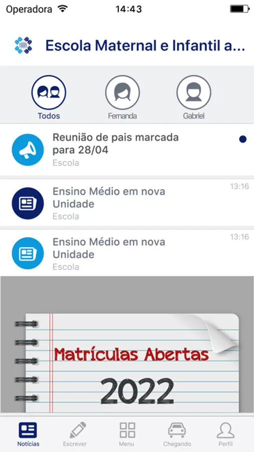 Com este aplicativo, os pais, responsáveis e professores poderão receber as últimas informações da escola, as notícias do dia a dia dos seus filhos e o calendário de atividades escolares.