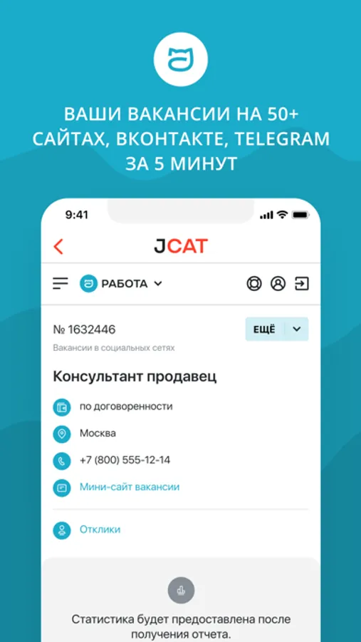 Размещайте вакансии, получайте отклики со всех сайтов и работайте с кандидатами прямо с телефона.