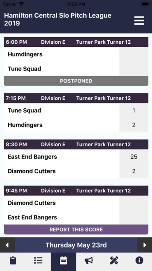 For event co-ordinators, we have an area where you can upload any format of CSV, postpone and reschedule games and send notification announcements to players and coaches in your league!
