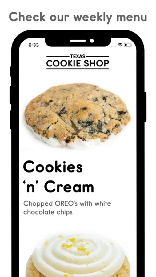 You can also scroll through our weekly rotating menu and read the description for each cookie. Have a favorite one this week? With Cookie Favorites, you can subscribe to cookies and get a notification each week the cookie is on our menu again. Never miss your favorite cookie again!