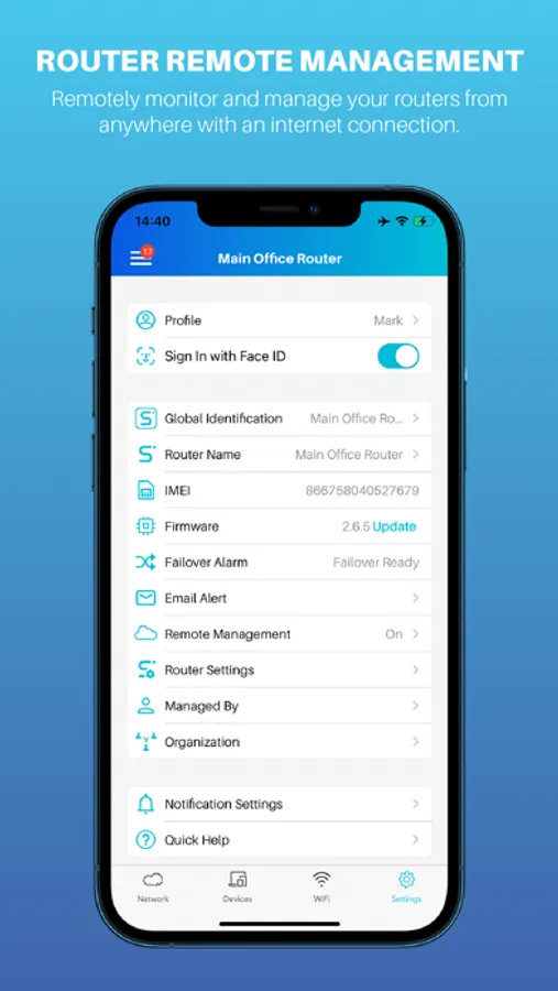 ◦ Monitor essential environmental information such as cellular signal strength, carrier, connected devices, IMEI, and firmware version.