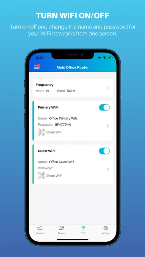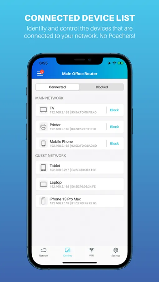 ◦ Block and unblock devices and guests from accessing WiFi networks.