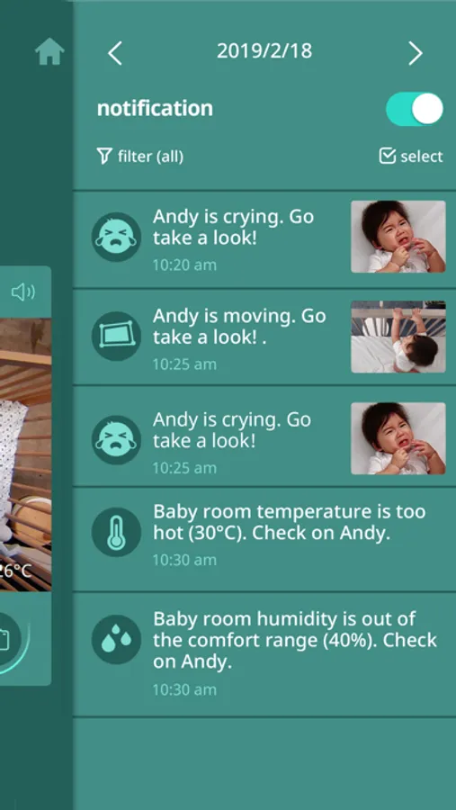 4.Multi-functions Smart Detection: Stay on top of your baby’s every need. An alert will be sent to parents or registered contact when a cry is identified, when unusual activities are detected from alert zones, or temperatures and humidities are significantly different from suggested values.