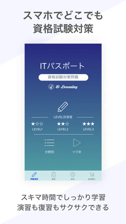 ・LEVEL2、LEVEL3の問題を追加で有料購入することでより高いレベルの問題を学習できます。
