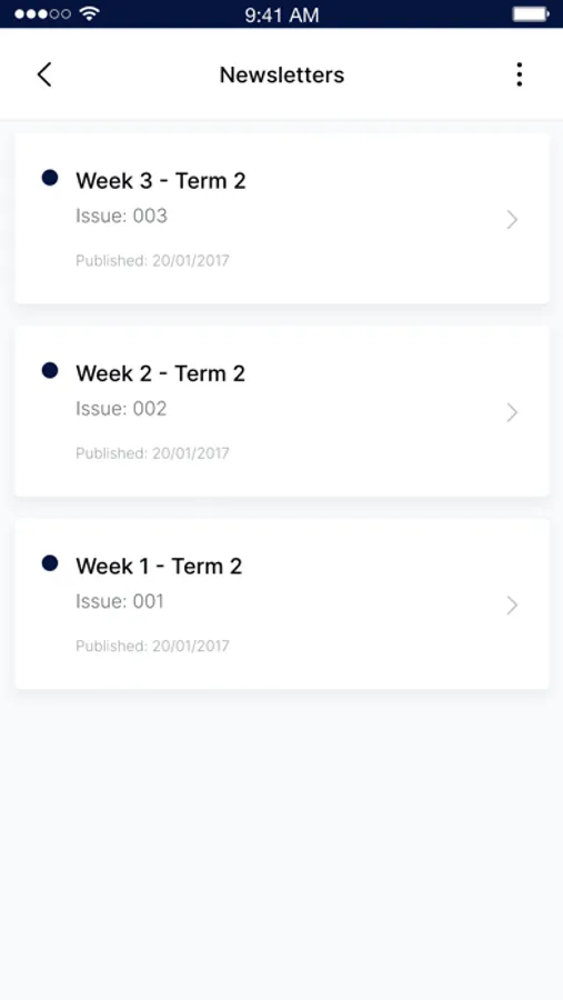 Newsletter: the Newsletter module allows Marist College Emerald to share electronic newsletters, directly to the app