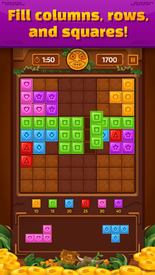 Clear the board by filling columns, rows and squares to survive in the wild jungle!